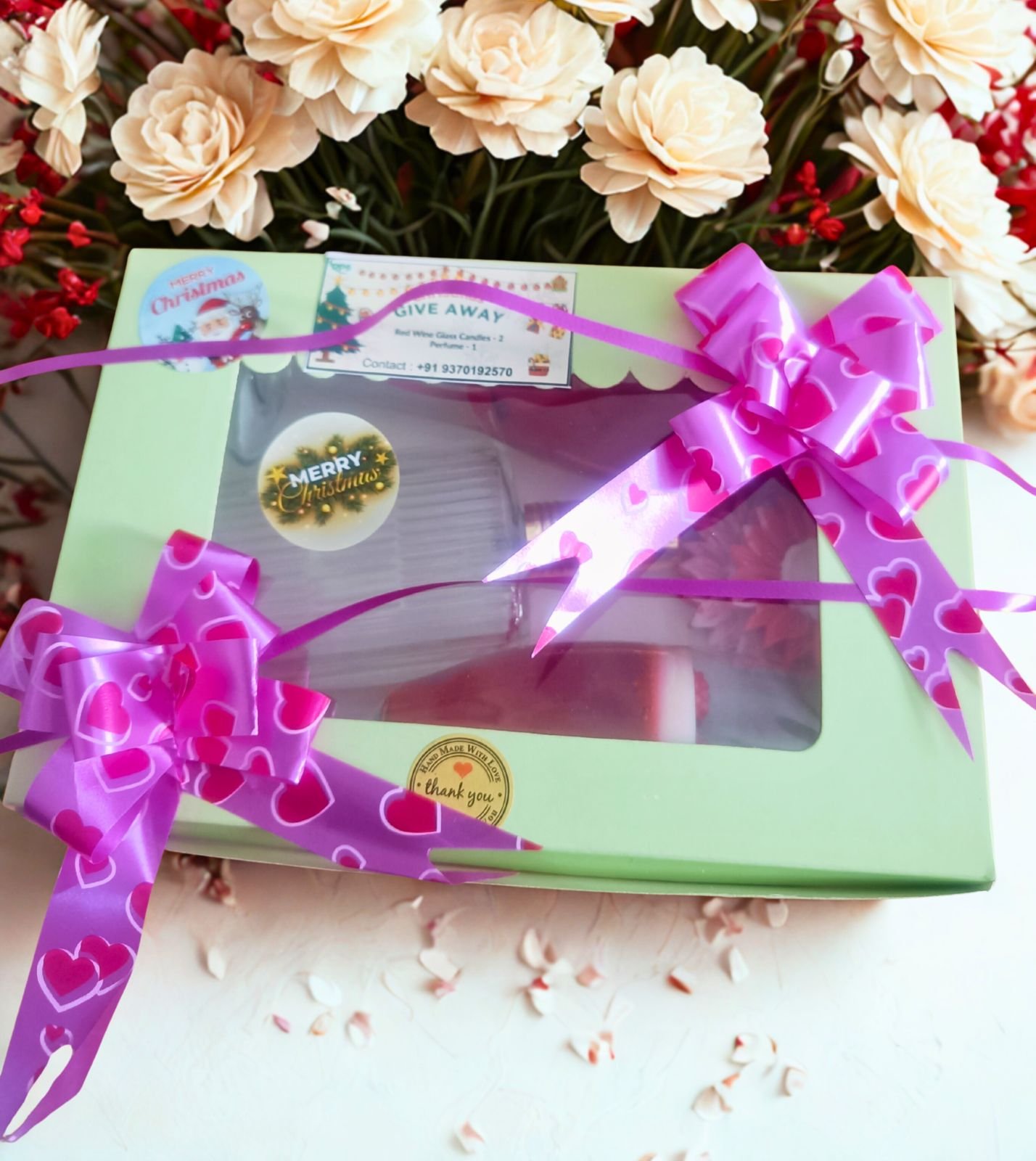 Home › Products › Gift Boxes › Christmas Gift Hamper Set With Luxury Glass Candles, Festive Floral Box, Holiday Celebration Pack